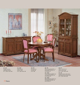 Credenza 3p 3c Sedia Verona Gambo liscio Piano allungabile Ø90 cm. Vetrina Volto 2p 2c Vetrina intarsio 2p 2c Tavolo ovale allungabile Credenza 3p 3c intarsio