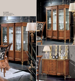 Credenza noce con oro Tavolo ovale allung. noce con oro Sedia Salieri noce con oro Cristalliera noce con oro