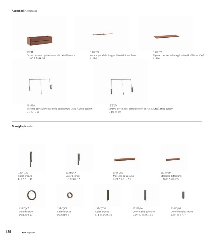 Cassettiera con guide ammortizzate/Drawers Asta appendiabiti aggiuntiva/Additional rod Ripiano per armadio aggiuntivo/Additional shelf