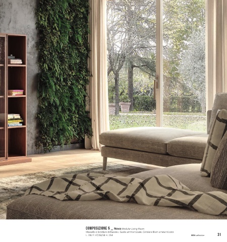 COMPOSIZIONE 5 _ Nova Modular Living Room Massello e listellare di frassino. Guide ammortizzate. Cerniere Blum ammortizzate 30 nova collection L. 282 P. 47/38/28 H. 154 nova collection 31