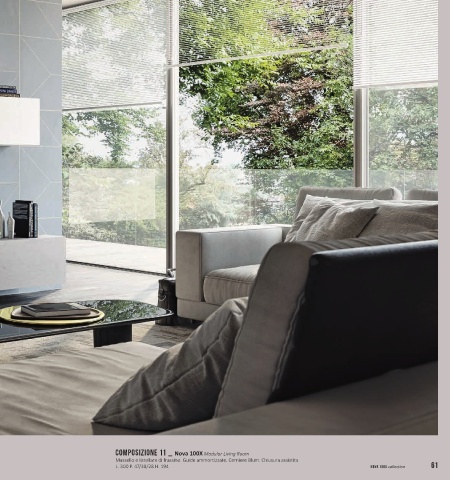 COMPOSIZIONE 11 _ Nova 100X Modular Living Room Massello e listellare di frassino. Guide ammortizzate. Cerniere Blum. Chiusura assistita 60 nova 100x collection L. 300 P. 47/38/28 H. 194 nova 100x collection 61
